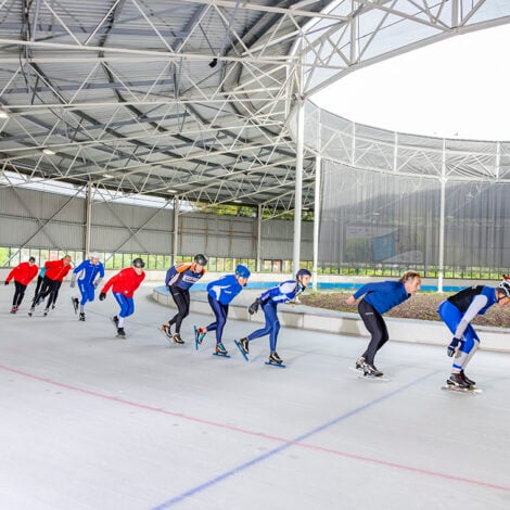 Vlakbij de baan is een horecagelegenheid waar je tussen het racen en schaatsen door even op krachten kan komen voor de volgende ronde(s). Met een warme chocomel en wat lekkers natuurlijk!