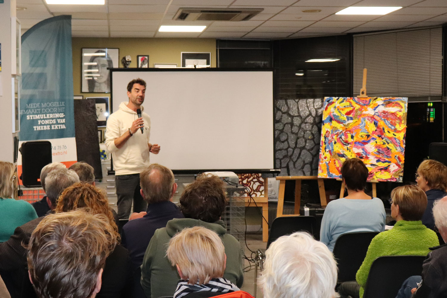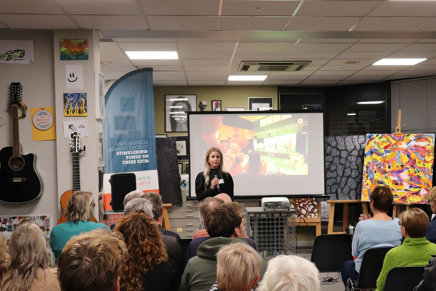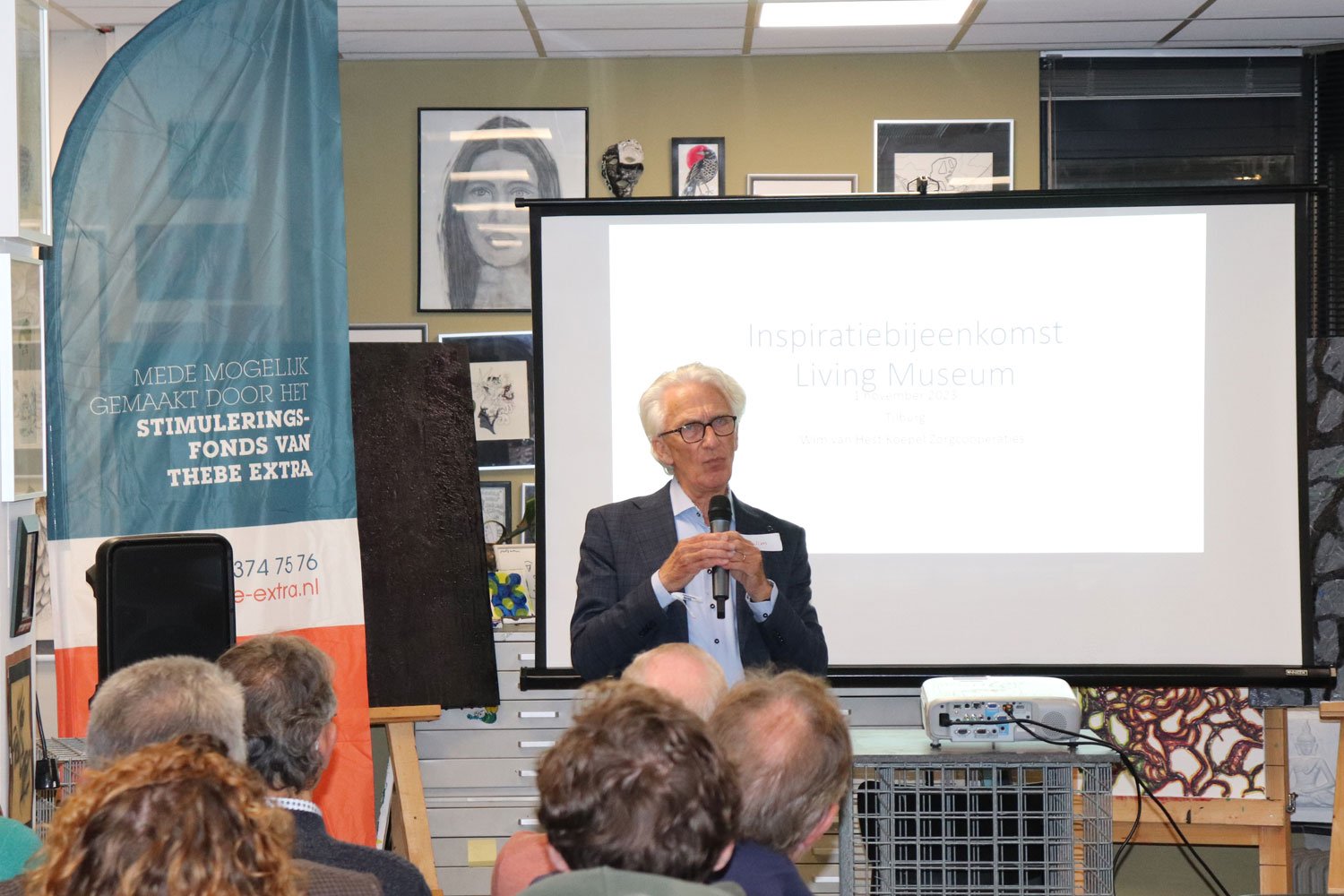 Op woensdagavond 1 november 2023 organiseerde Ledenvereniging Thebe Extra een bijeenkomst in The Living Museum in Tilburg. Alle projecten die ondersteund zijn via het Stimuleringsfonds in het afgelopen jaar werden deze avond in het zonnetje gezet. De avond stond in het teken van elkaar ontmoeten, luisteren naar inspirerende initiatiefnemers en uitwisseling van kennis en ervaring tijdens de creatieve workshop op deze bijzondere locatie.